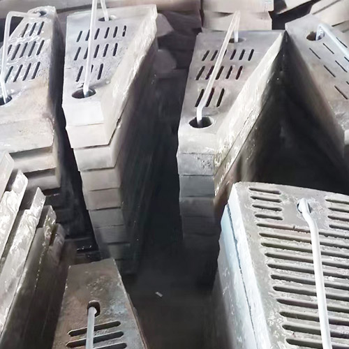 根據(jù)實踐觀察,半自磨機內部的頑石不斷積累,這是磨削效率下降的一個重要原因。這些頑固的石頭不斷積累在研磨機內部,不能及時排放,提高了無效填充率,影響了礦石顆粒的組成。在整個半自研磨機襯里中,排水格板由中央格板和周圍格板組成。